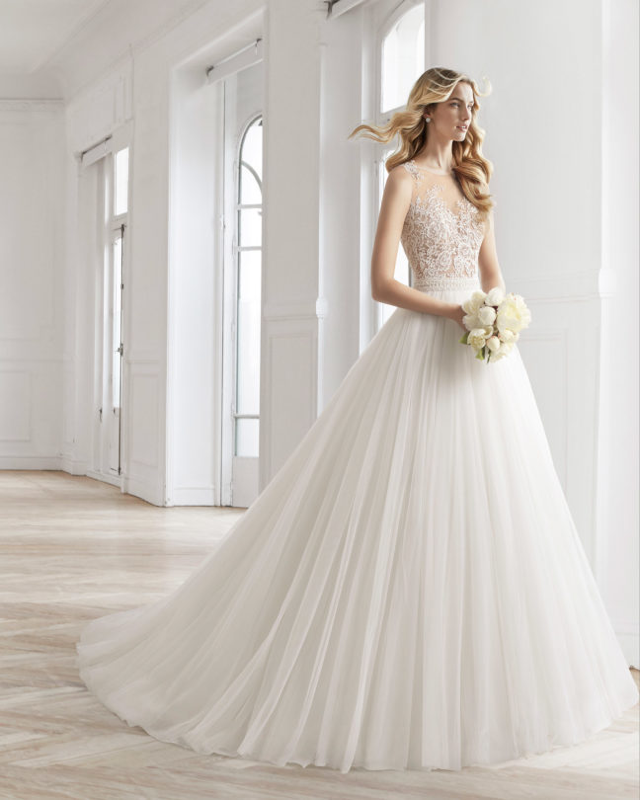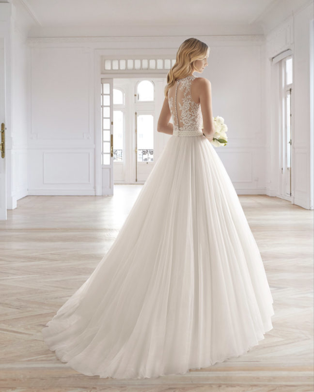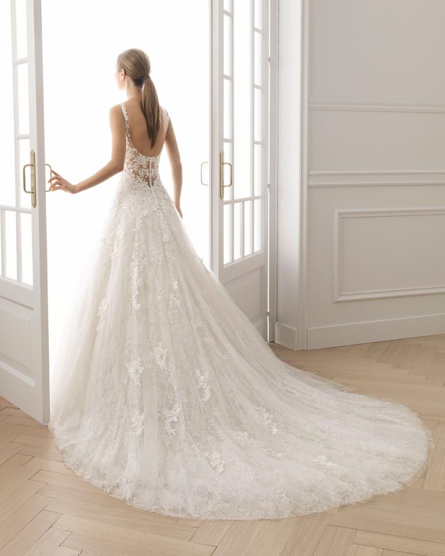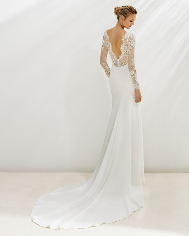 We are thrilled to present Montreal brides with what we think is the most fashionable bridal collection for 2020. AIRE Barcelona is part of the Rosa Clara group, and very appropriately named. The fabrics and laces are both delicate and exquisite. The collection is varied with slim vintage-inspired dresses to corseted ballgowns.
