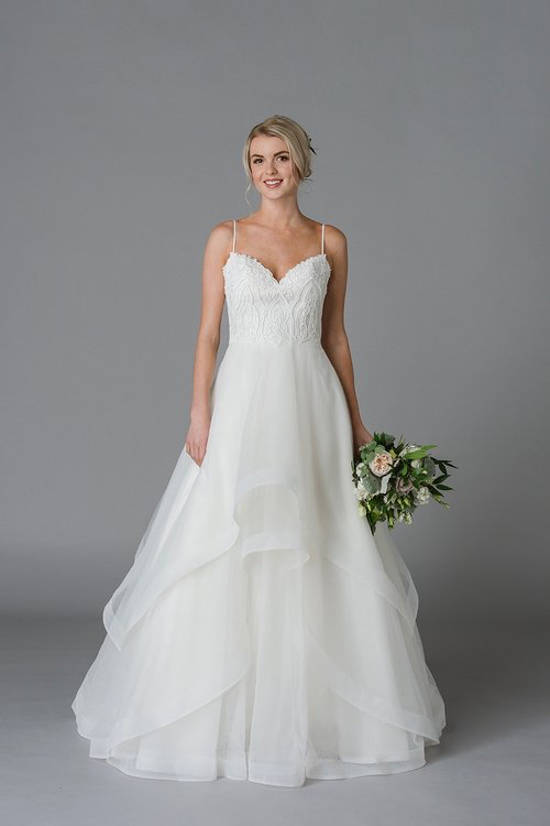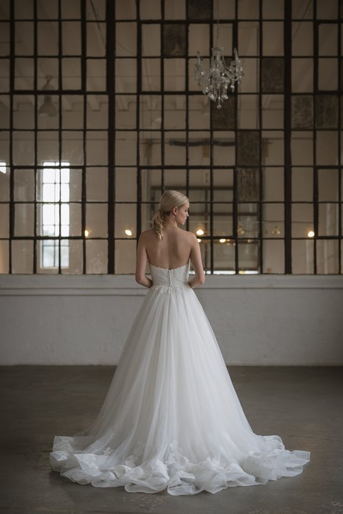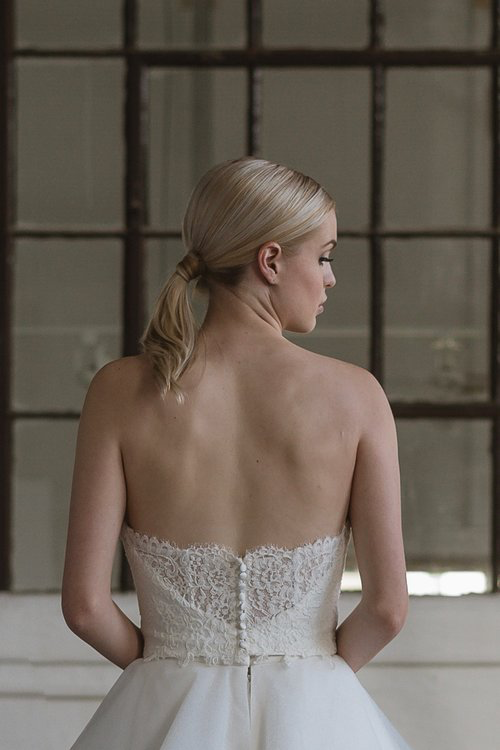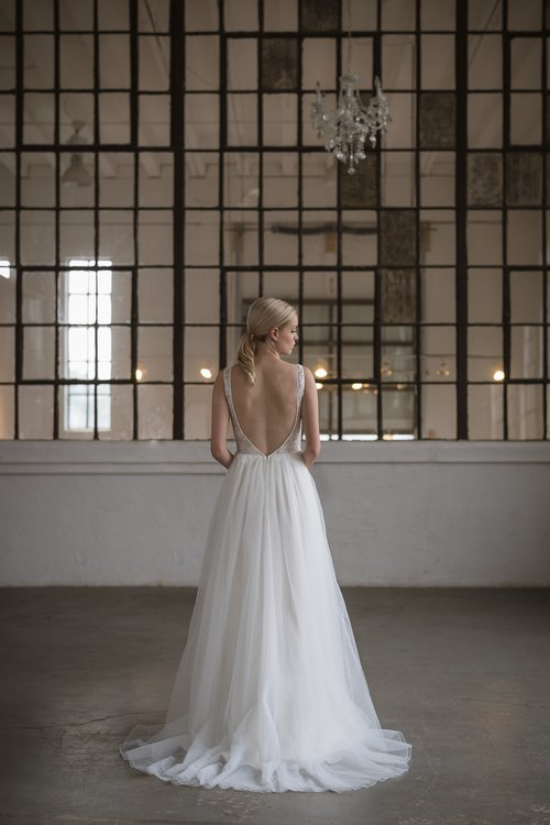 The Lis Simon label is redefining moderately-priced bridal with beautiful fabrics, lace, and the judicious use of embellishment. The designer collection focusses on budget friendly gowns which have an unmistakable couture look and feel. The unparalleled construction and unique details such as pearl buttons and modern beadwork will make you feel that these gowns should be twice the price. Not to miss! Lis Simon is a fellow Canadian designer from Calgary, Alberta.